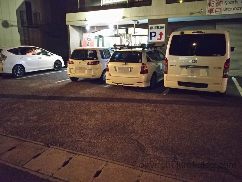 私達が、らーめん晴れるやに行ったのは夜の8時過ぎだったんですが、お店のすぐ前の駐車場が空いていたので、そこに停めることにしました。