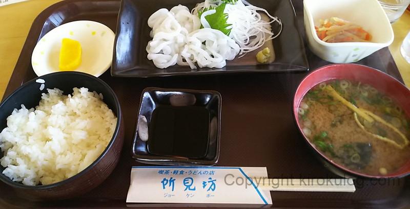 事前に調べたところ、所見坊は新鮮な魚介類を使った定食がおすすめとのことだったので、私は「アオリイカの刺身定食」を注文してみました。