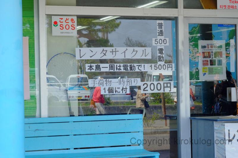 レンタサイクルは、本島港すぐ近くの本島港待合所で借りることができ、レンタサイクル利用の際は申込書に必要事項を記入し、係員の方にレンタサイクル料と一緒に渡しましょう。