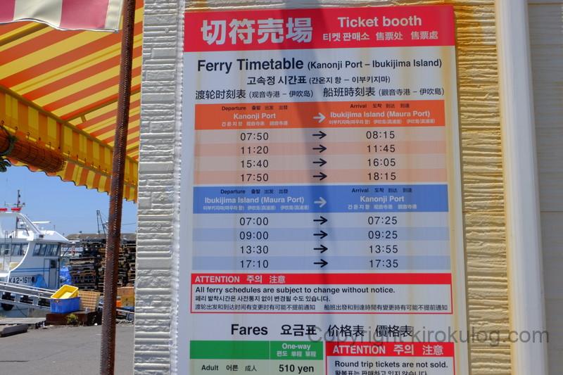また、伊吹島行き、観音寺港行きのフェリーの時刻表は下記のようになります。