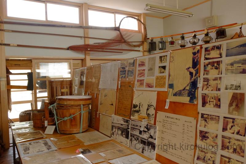 伊吹島民俗資料館は、旧伊吹幼稚園跡を利用した建物で、漁に使う道具や伊吹島の歴史などを知る文献が展示されています。
