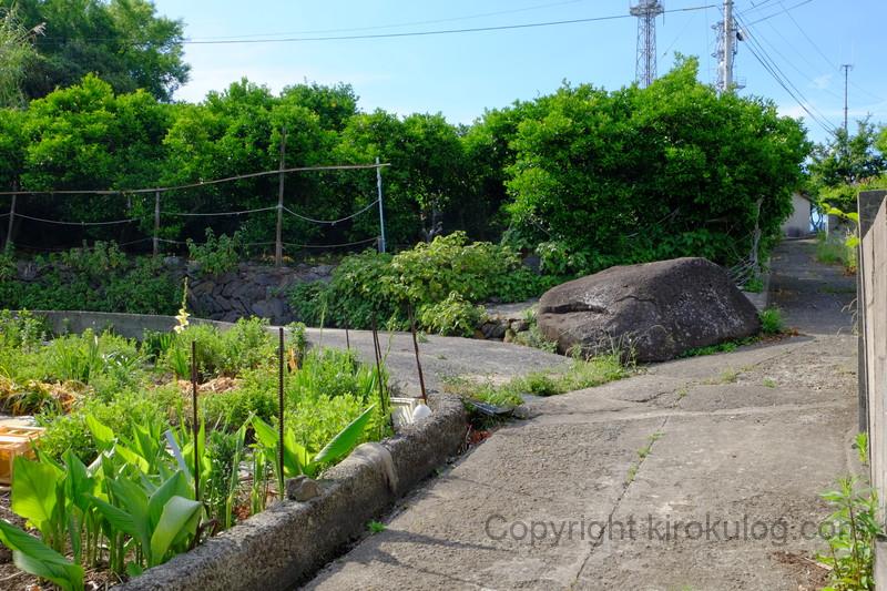 私たちは、北浦港が見える場所から更に坂道を上っていき、伊吹島で1番標高が高い場所にある「鉄砲石」にやって来ました。