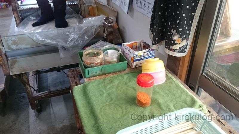 池内うどん店には、特製の一味唐辛子が用意されています。
