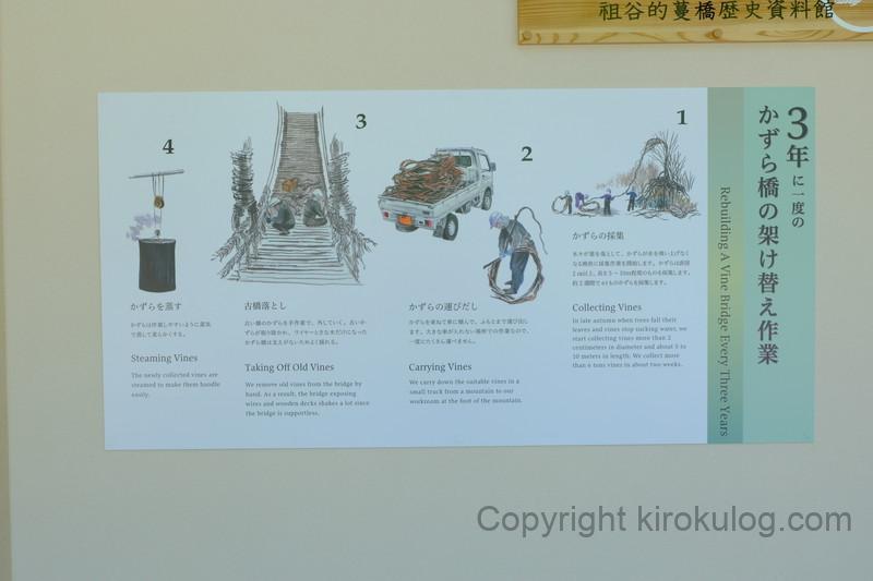 そのため、かずら橋の老朽化が早く、3年に1度架け替え工事が行われており、かずら橋の架け替えには約1ヶ月の工期を要するんだとか。