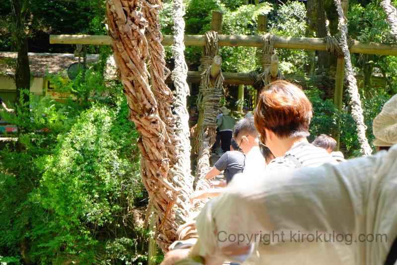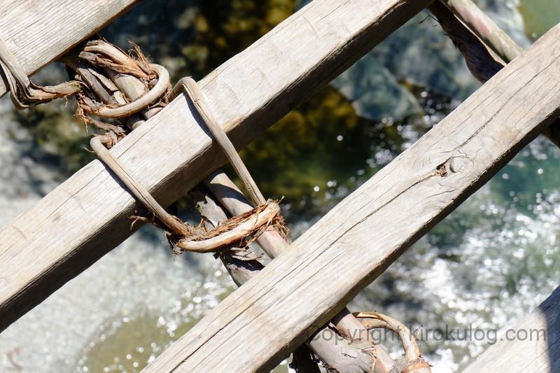 ちなみに、かずら橋はかずらだけを使用した橋ではなく、安全のためにワイヤーが使用されており、かずらはそのワイヤーを包み込む装飾の役目をしています。