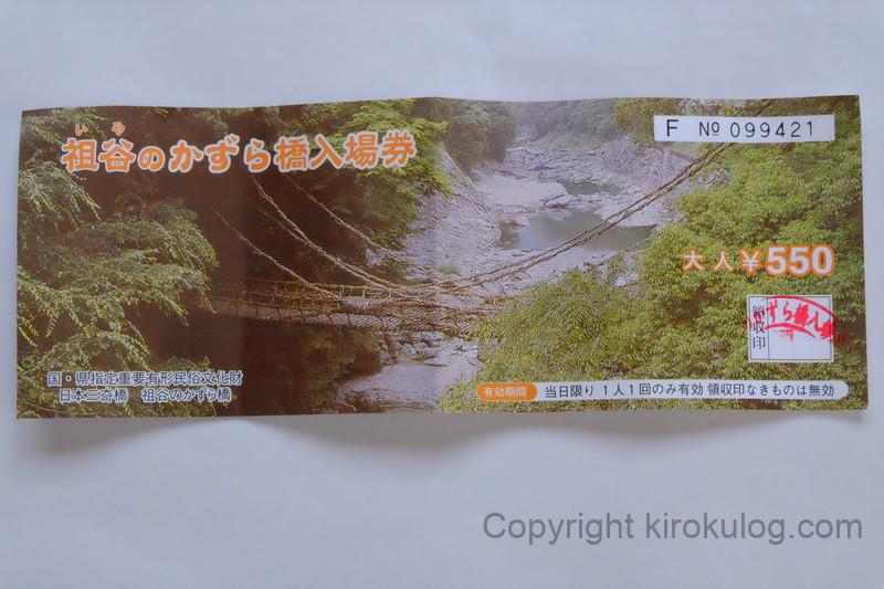 通行料は、祖谷のかずら橋のすぐ近くにある窓口で支払うようになっており、通行料を支払うと「祖谷のかずら橋入場券」を貰うことができます。
