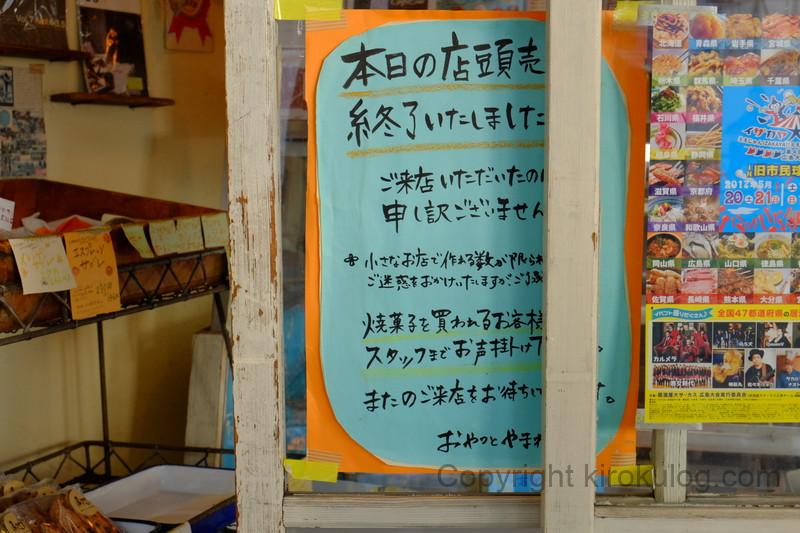 「本日の店頭販売は終了いたしました」という張り紙が・・・