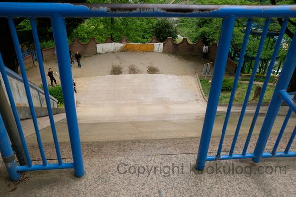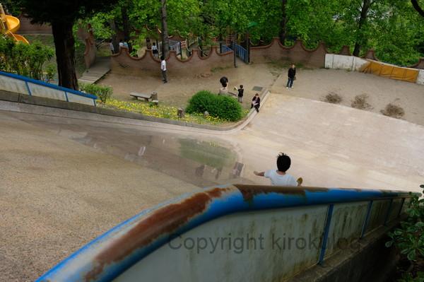滑り台を滑りながら、悲鳴をあげる子供を横目に、とりあえず滑り台の下まで行ってみました。